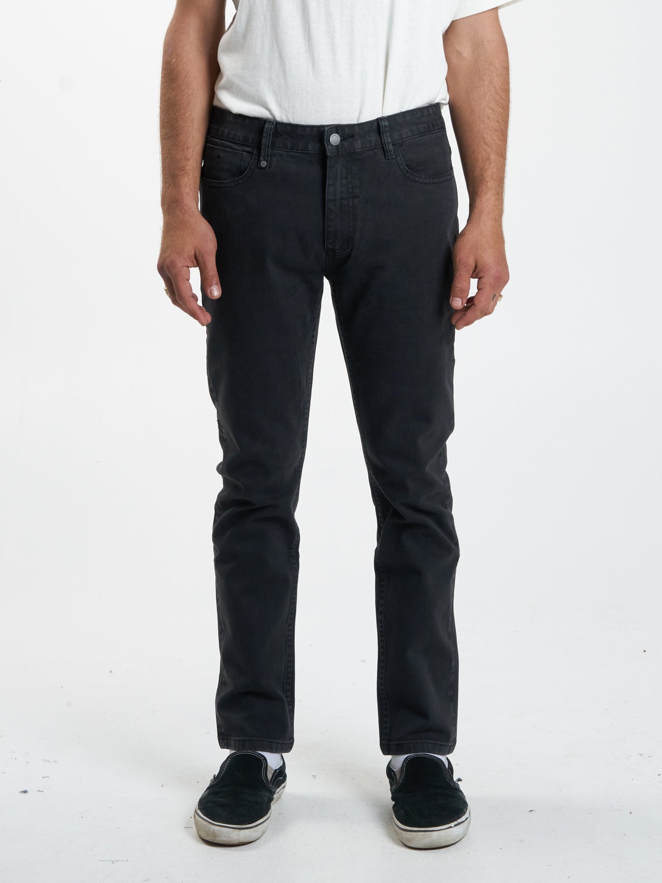 A classic straight fit and mid rise jean. Washes are built to reflect a vintage/grunge tone with 2% stretch for the modern functionality.