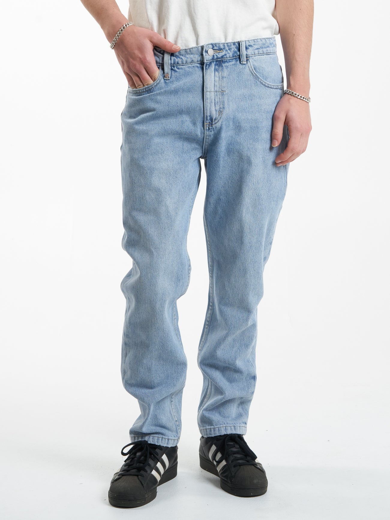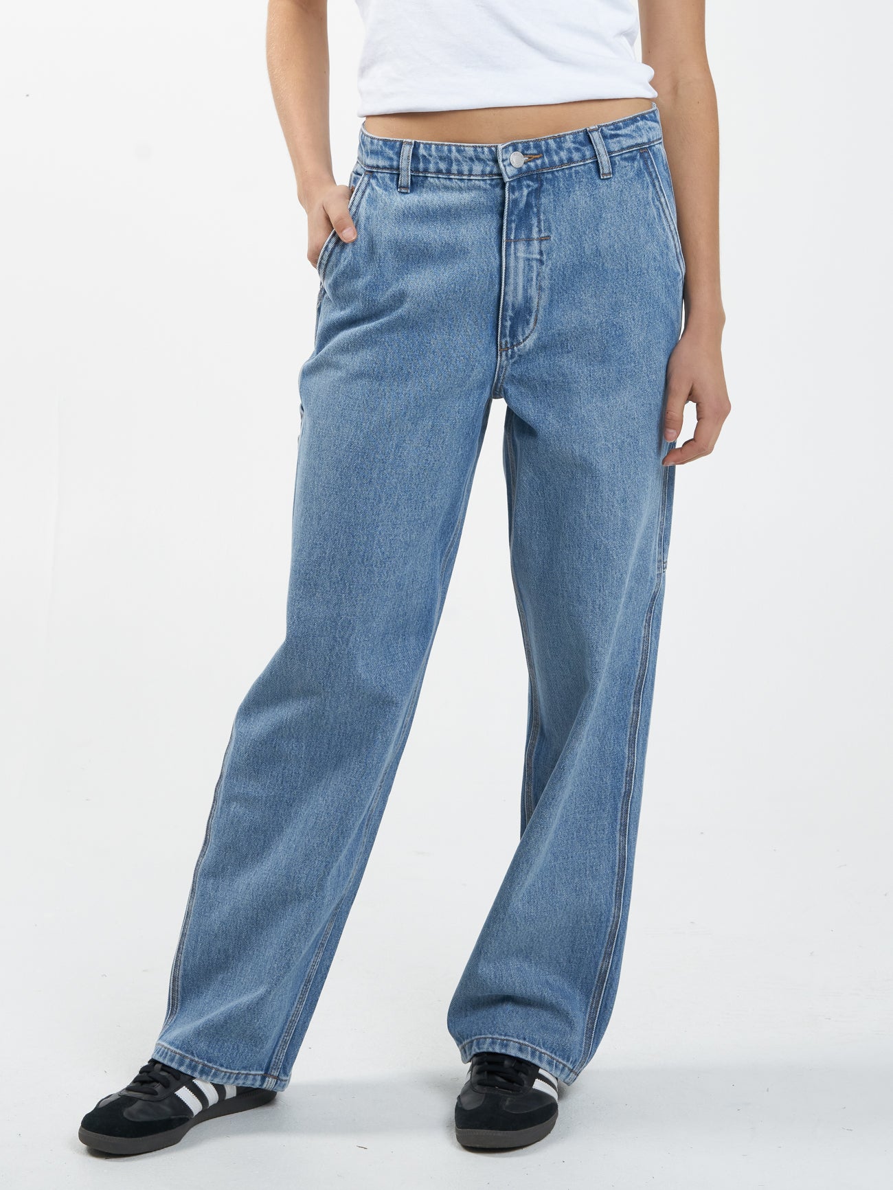 Thrills ‘workwear’ style in a loose fit. Rigid denim complete with oversize back pockets, hammer loop and smaller utility pockets make these the perfect throw-back to 90’s loose fit denim.