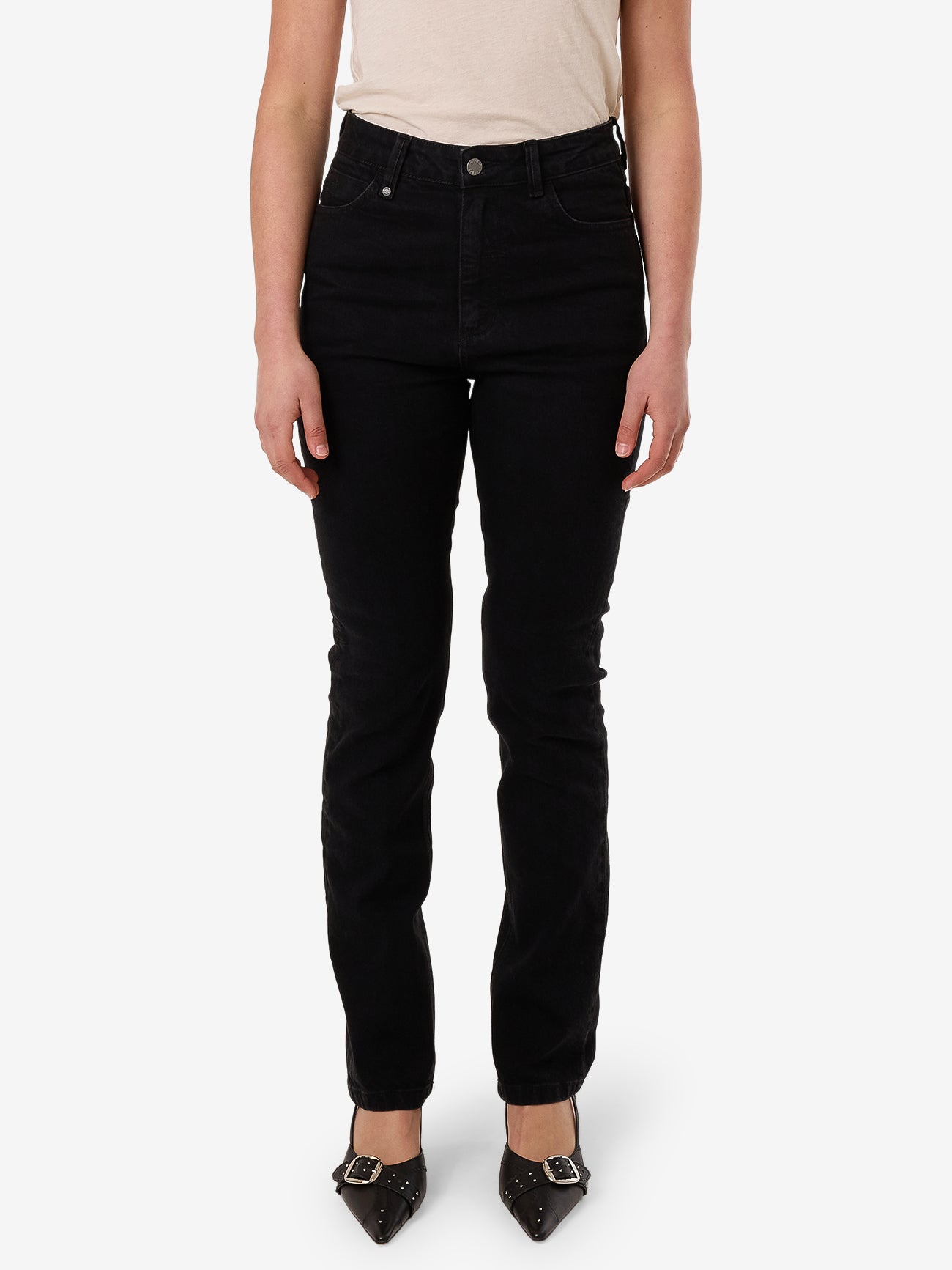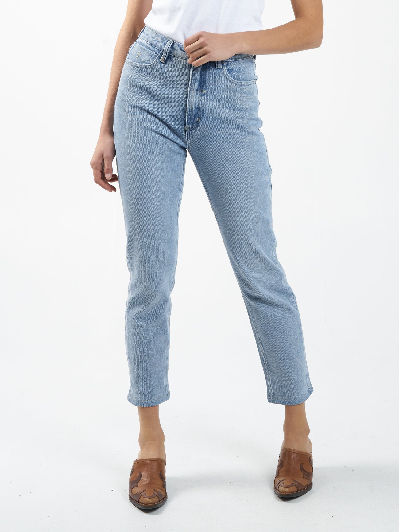The Paige Jean is high-waisted with a straight leg and features a button fly and raw slightly cropped hem - cut to suit any womanly body.