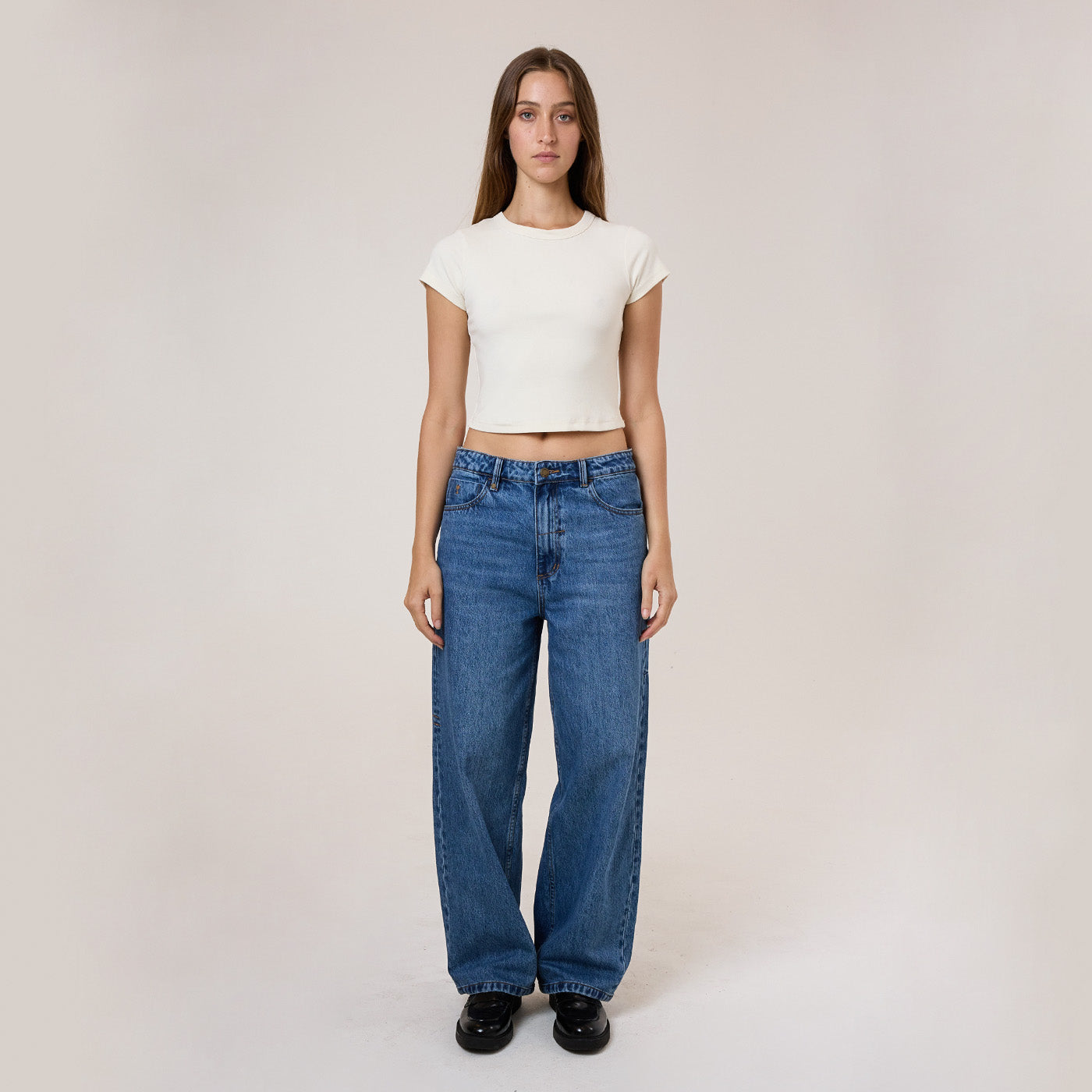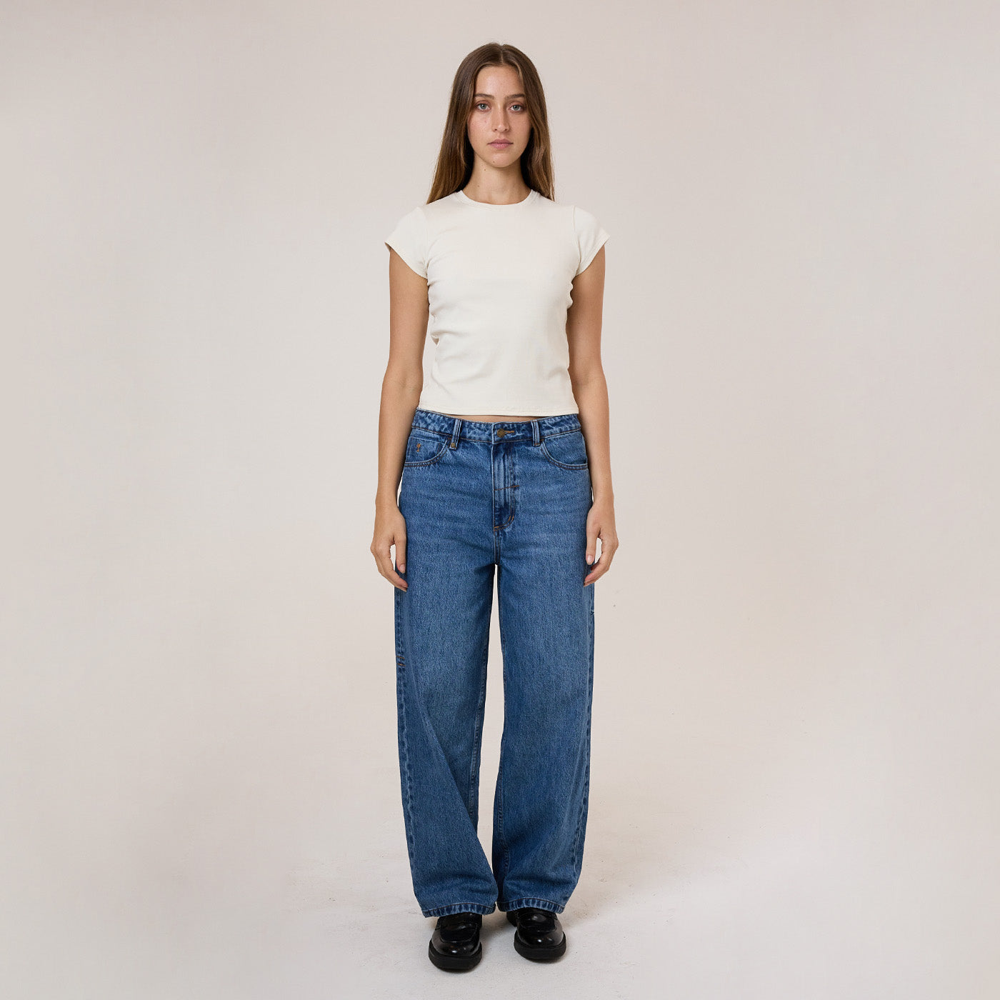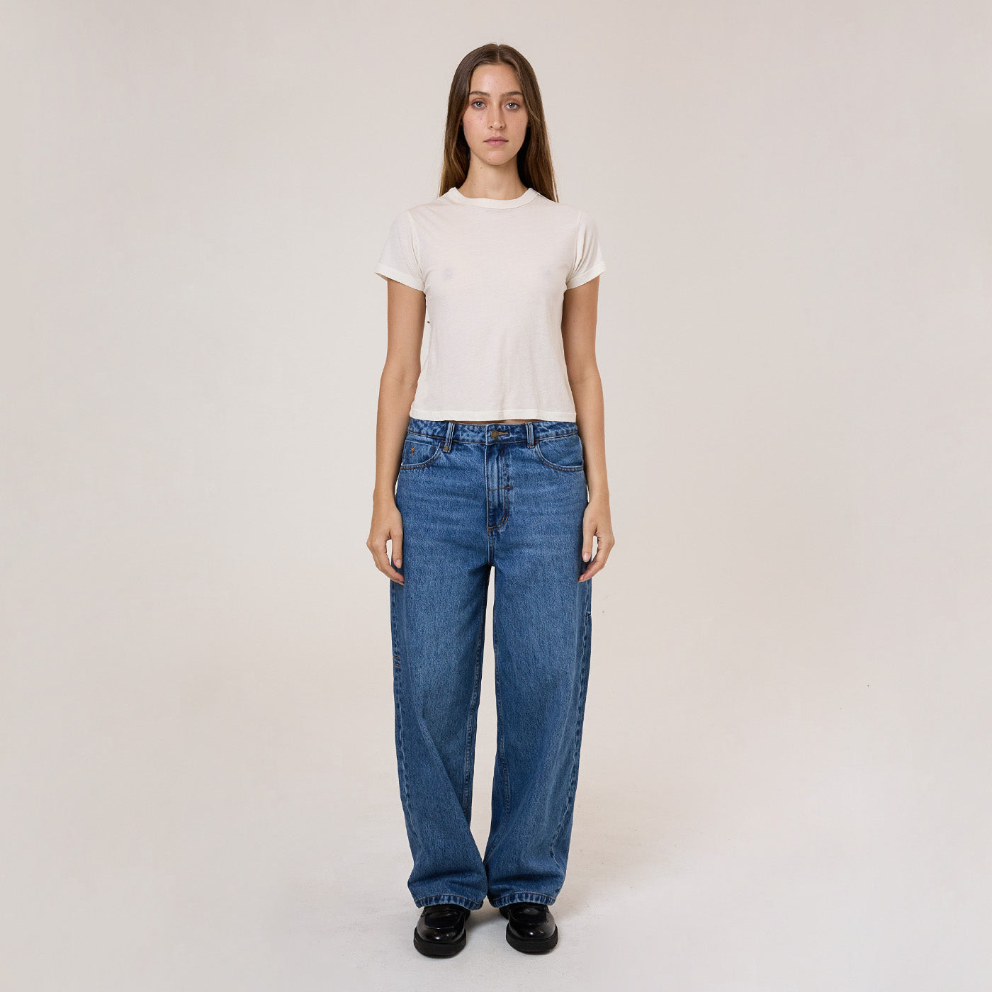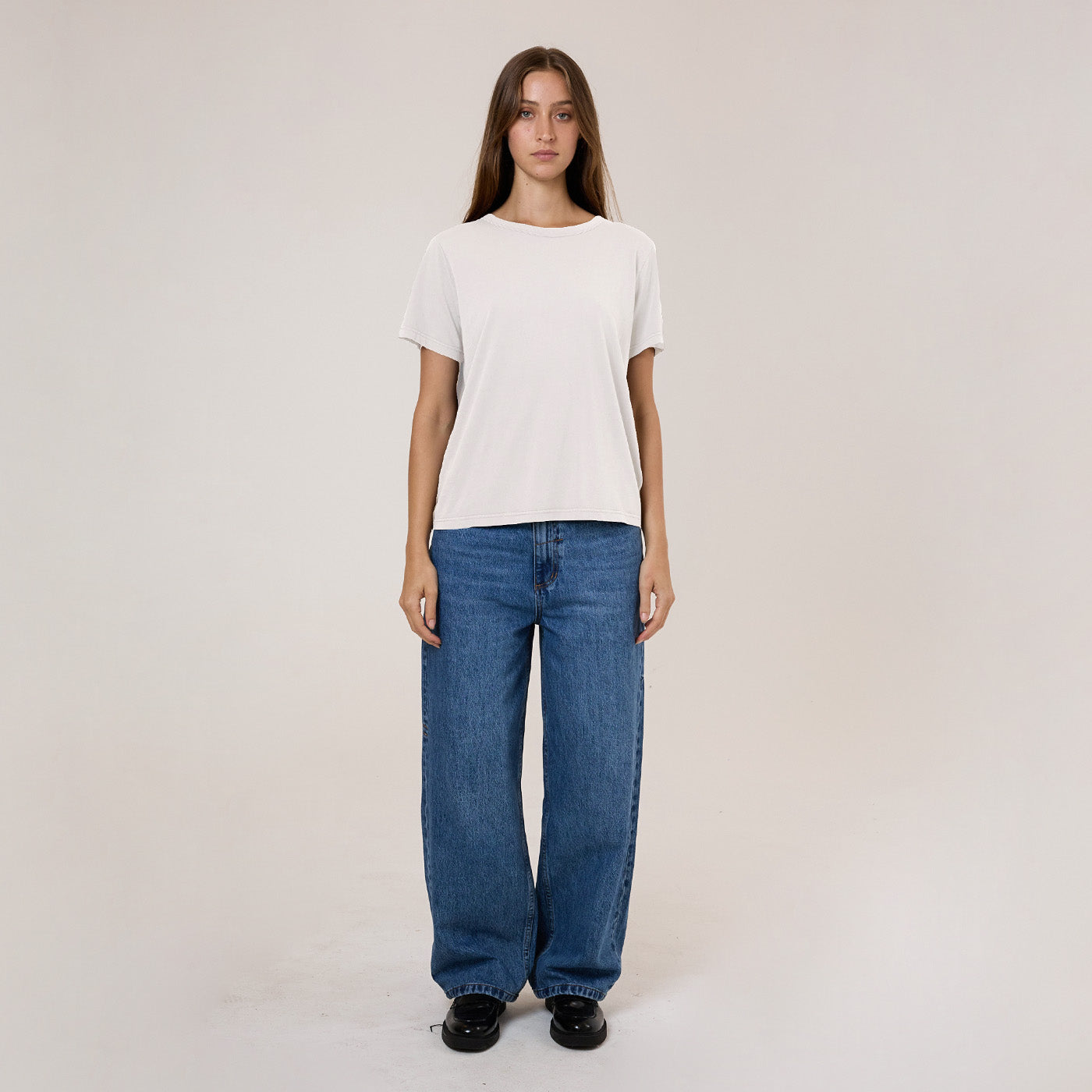 Cut in lightweight 95gsm jersey, relaxed fit, designed to fall just above low-rise pant, classic crew neck.