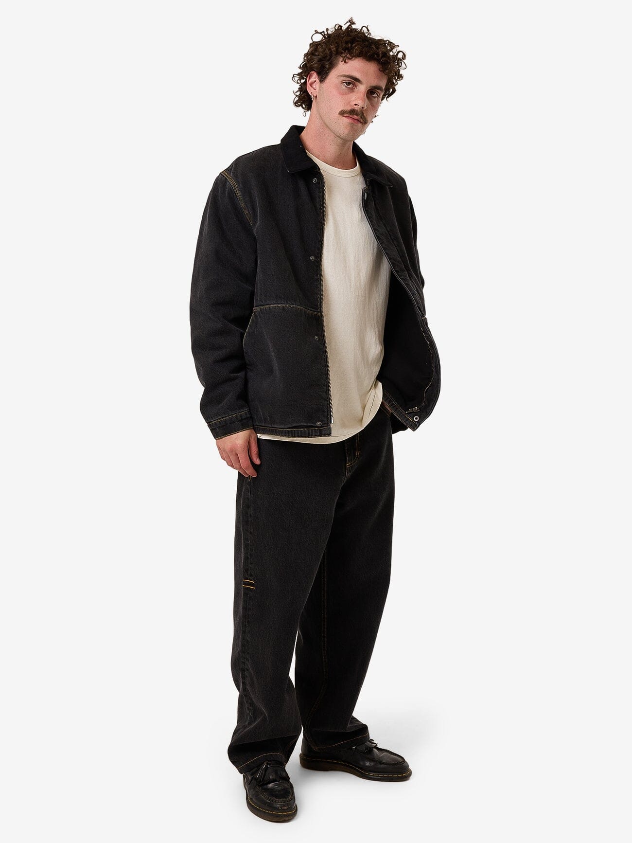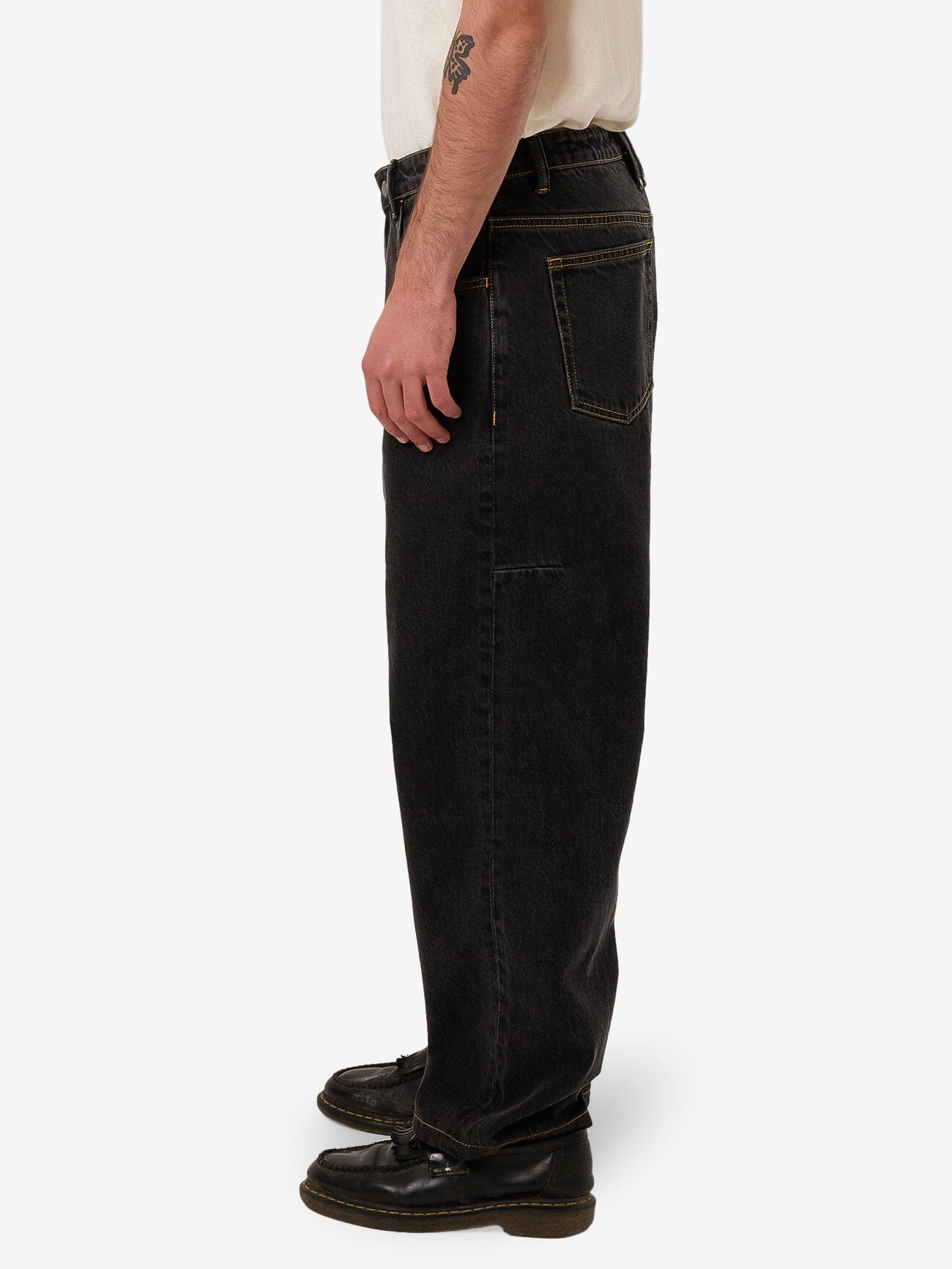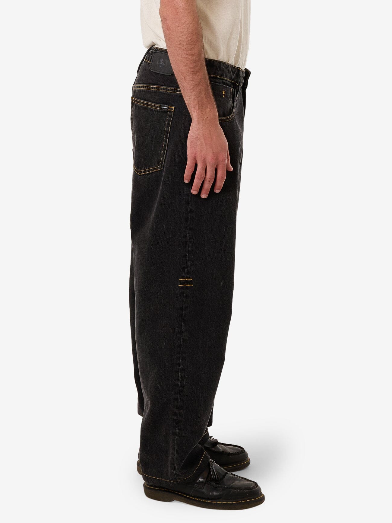 Take your denim game up a notch with the Big Slacker Baggy Denim Jean in Black Bull. Made from heavy-wearing cotton bull denim, these men's jeans combine a relaxed, straight-leg fit with tough fabric perfect for everyday wear. A designer's choice, it features stitch detailing for a more elevated finish.