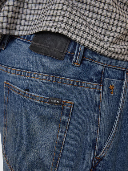 Extra room with extra attitude, the Big Slacker Pleat Denim Jean in Vanish Mid Blue takes denim to new levels. With front pleat detailing and a wide, baggy silhouette, these Thrills are built from a hefty cotton denim blend, delivering that structured drape you want from true relaxed fit pants. Designed with multiple pockets and handy belt loops for a versatile, easy-to-wear finish.