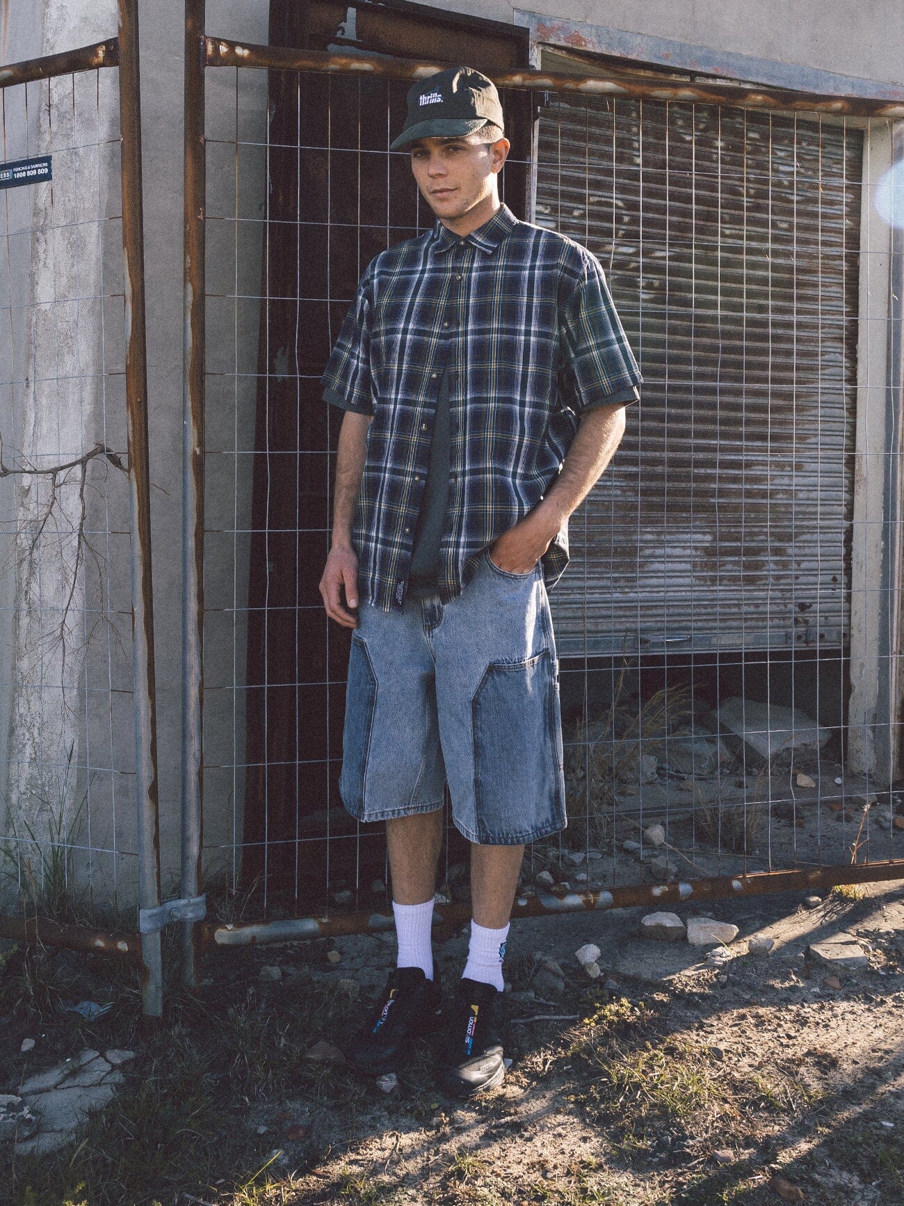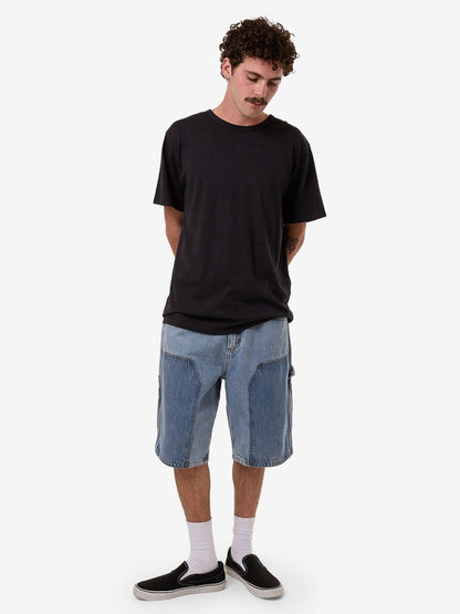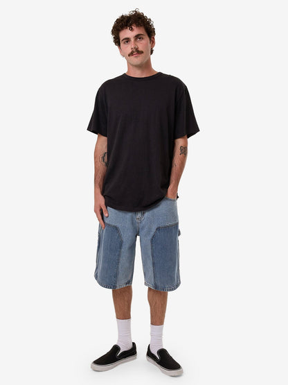 Authentic street style at its best, the Carpenter Big Slacker Double Knee Short in Faded Rinse Indigo shows off our "hard yakka collaboration" with vintage-inspired wash and reinforced mixed panels. Loose and baggy, it's the 90s style reinvented with the modern comfort of cotton denim. Pair with your favourite oversized tees and you're ready to make a lasting impression.