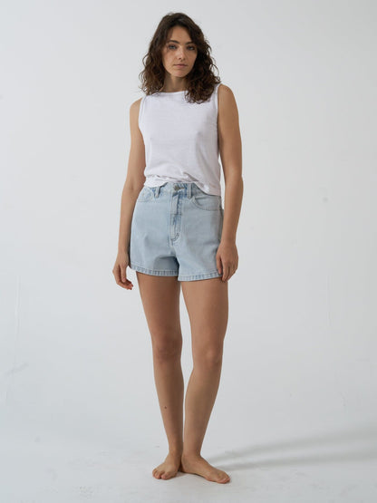 Our Erica Short in Faded Dust Blue is a summer staple you'll want to wear every day. A blend of comfy and sturdy, this denim short is made from high-quality organic cotton denim complete with all the classic features you'll love. Front and back pockets for handy storage, belt loops for accessorizing and a durable button closure. Available in a faded wash for a vintage appeal that gets better over time.