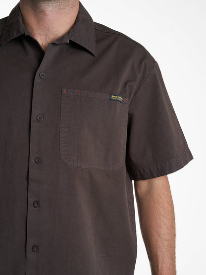 The Hard Yakka x Thrills Short Sleeve Shirt in Postal Brown is a laid-back yet stylish addition to any wardrobe. Made with pure cotton, this button-front shirt offers an oversized, slightly slouchy cut with short sleeves. The front chest pocket with patch label sets it apart, blending classic design with a bit of edge.