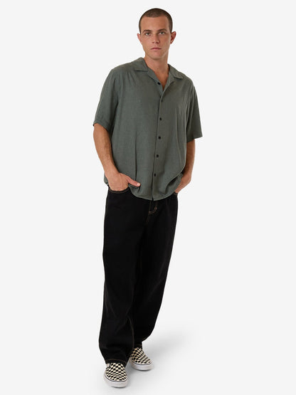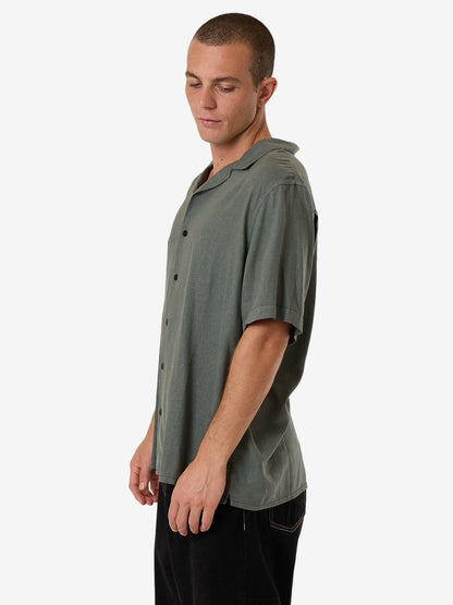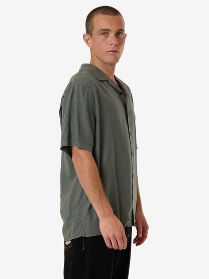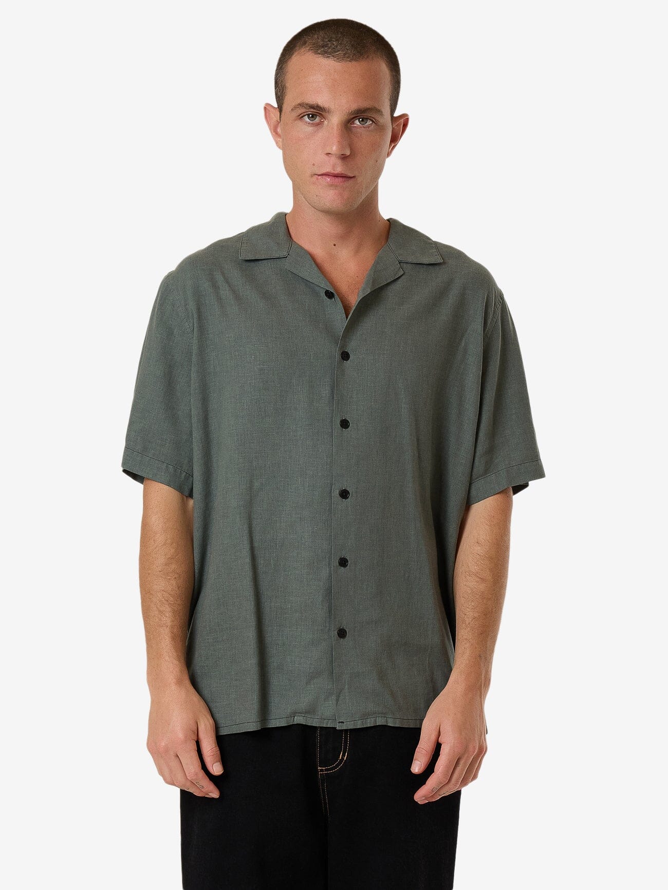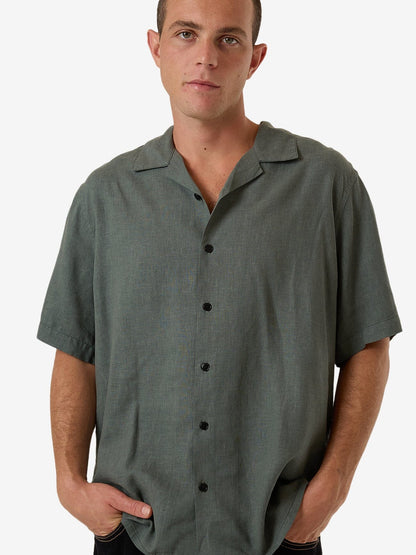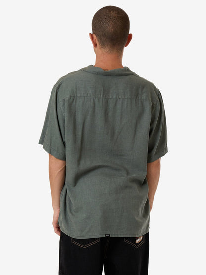 Hemp Minimal Thrills Contrast Stitch Bowling Shirt Dark Forest
