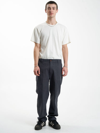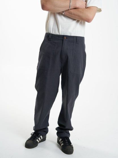 Expertly blending fashion and function, this Hemp Thrills Slacker Utility Pant in Slate is a must-have for work and casual settings. With a relaxed fit and straight legs, this men's utility pant delivers a casual vibe you can wear all day. It is thoughtfully crafted from the perfect blend of hemp and canvas for a soft feel yet crisp finish.