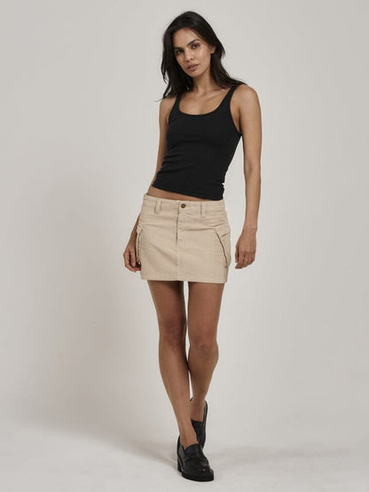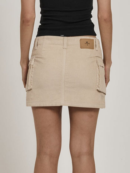 Get ready to add some serious edge to your wardrobe with the Lottie Cargo mini skirt in soft tan. This skirt features big side pockets and is made of soft Organic cotton for a trendy and comfortable fit that is sure to turn heads. The versatile soft tan color makes it easy to pair with a variety of tops and accessories, perfect for creating your own unique look. This skirt is both durable and easy to maintain, so you can wear it again and again without any hassle.