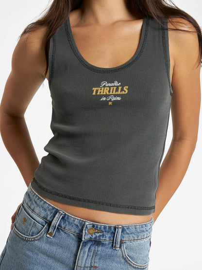 This Sessions Rib Singlet in Merch Black will help you stay cool and stylish in hot weather. Designed to beat the summer heat, this easy-to-wear singlet is made from a blend of organic cotton and elastane for all-day breathability. Soft ribbed fabric stretches for a comfortable fit while the sleeveless cut gives you a refreshing, airy feel. Completing the look is the unique, subtle Thrills graphics on the front.